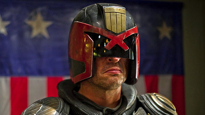 In the past decade, I saw one instance where the Hollywood headbutt made sense. That was, of course, the sci-fi battlefest, “Pacific Rim.” In that context, the giant armored robot headbutts a giant unarmored alien monster, knocking it loopy. That makes some sense. Tonight, I saw the second appropriate use of the HH. In “Dredd“, title character Judge Dredd (Karl Urban) headbutts his opponent. Dredd wears a helmet. His opponent does not. THAT MAKES SENSE!